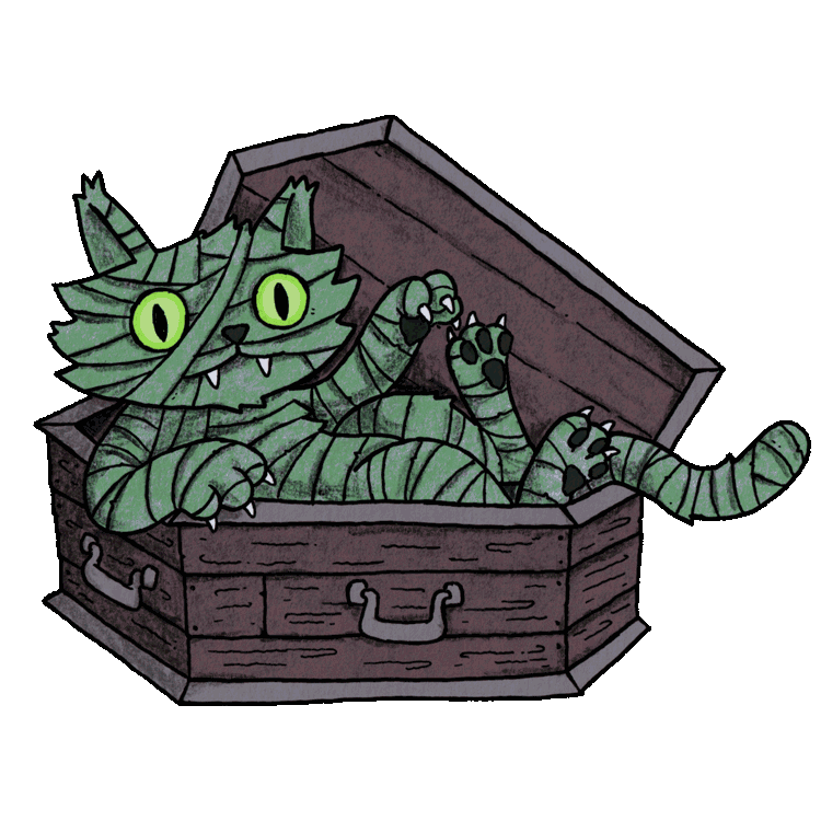 You have stumbled into a dusty tomb, undisturbed for many years. the air is thick with the musty odour of earth and cat litter. You hear sounds of scratching from within a nearby coffin. Suddenly a long and loathsome "Meeeeeeeoooow" breaks the centuries long silence as it creaks open.....